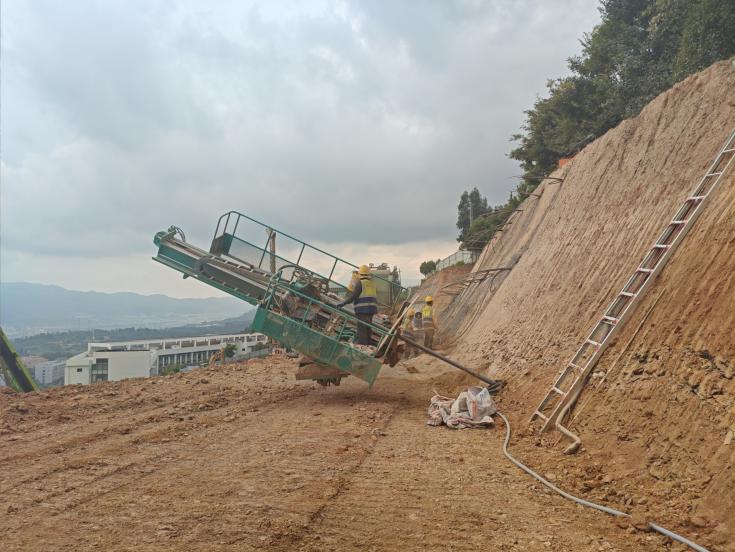 9月24日,A段边坡设计格构梁锚索398孔,本月完成钻孔、锚索安装、一次注浆133孔,完成三分之一;
