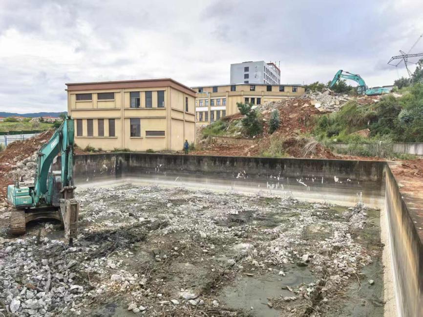 9月22日,1标段—绘锦苑4号、5号学生公寓及其附属工程露天蓄水池拆除。