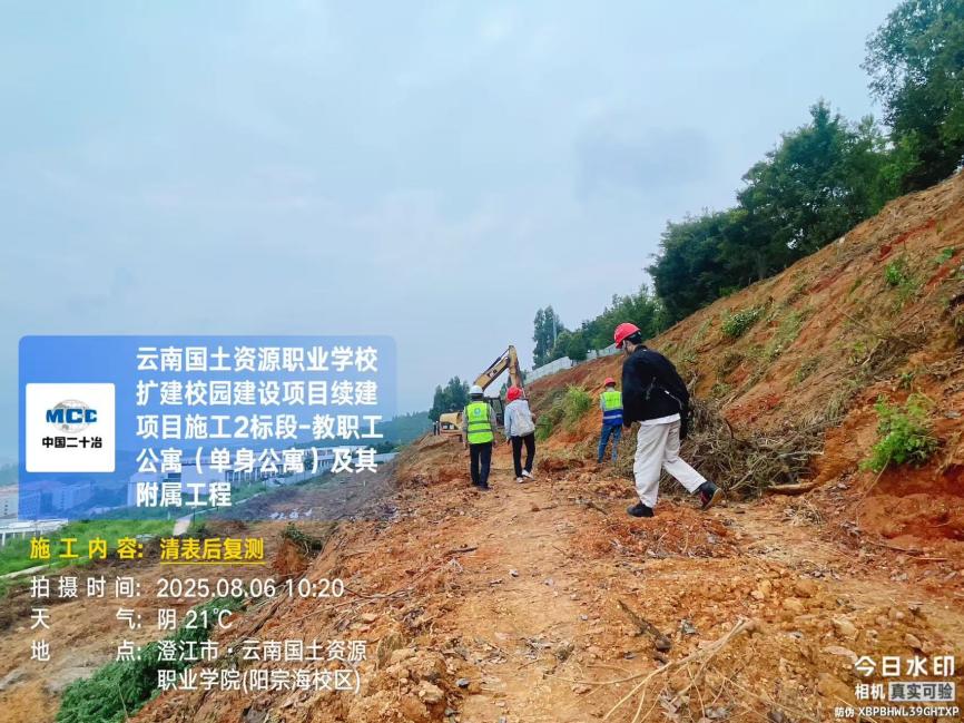8月7日,2标段—教职工公寓(单身公寓)清表后复测。