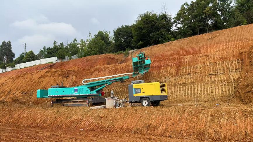 8月15日,2标段—教职工公寓(单身公寓)边坡施工锚索机施工。