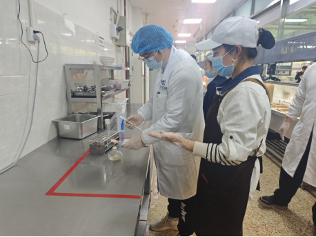 为保障食品安全,加强食品安全监管,2025年12月1日-10日,后勤与基建服务中心邀请第三方检测机构对全校两校区所有食堂进行抽样检测,此次共抽检41批次熟食,8批次餐具,8批次手部卫生,16批次食品原材料。
